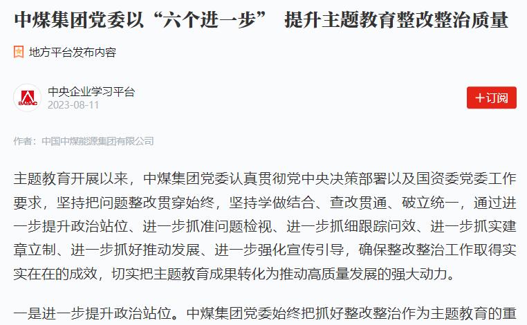 【中央主題教育官網】中煤集團:“六個進一步”提升...